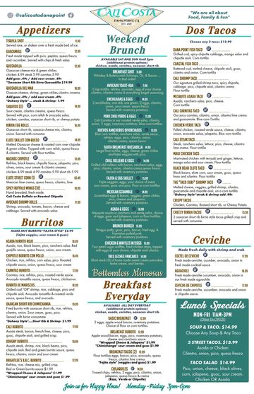 Cali Costa is your neighborhood spot serving fresh California Mexican cuisine in Dana Point